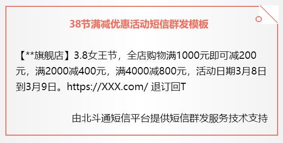 上海38节满减优惠活动信息短信怎么推送给顾客,上海润慕实业用自己的短信群发软件有效的短信营销案例来告诉你,通过短信营销举办会员优惠和满减活动能够吸引大量的客户到店消费明显提高销售额改膳企业效益。